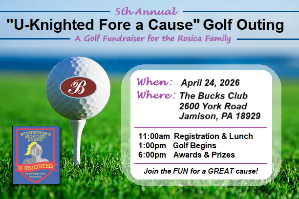 The Fifth Annual "U-Knighted Fore a Cause Golf Outing” will take place on Friday, April 24, 2026 at The Bucks Club in Jamison PA.